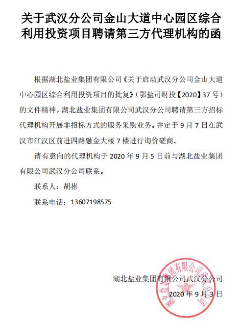關(guān)于武漢分公司金山大道中心園區(qū)綜合利用投資項(xiàng)目聘請(qǐng)第三方招標(biāo)代理機(jī)構(gòu)的函.pdf