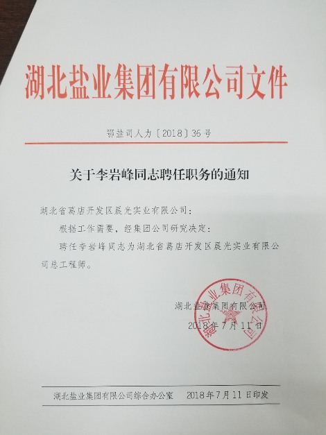 關(guān)于李巖峰同志聘任職務(wù)的通知