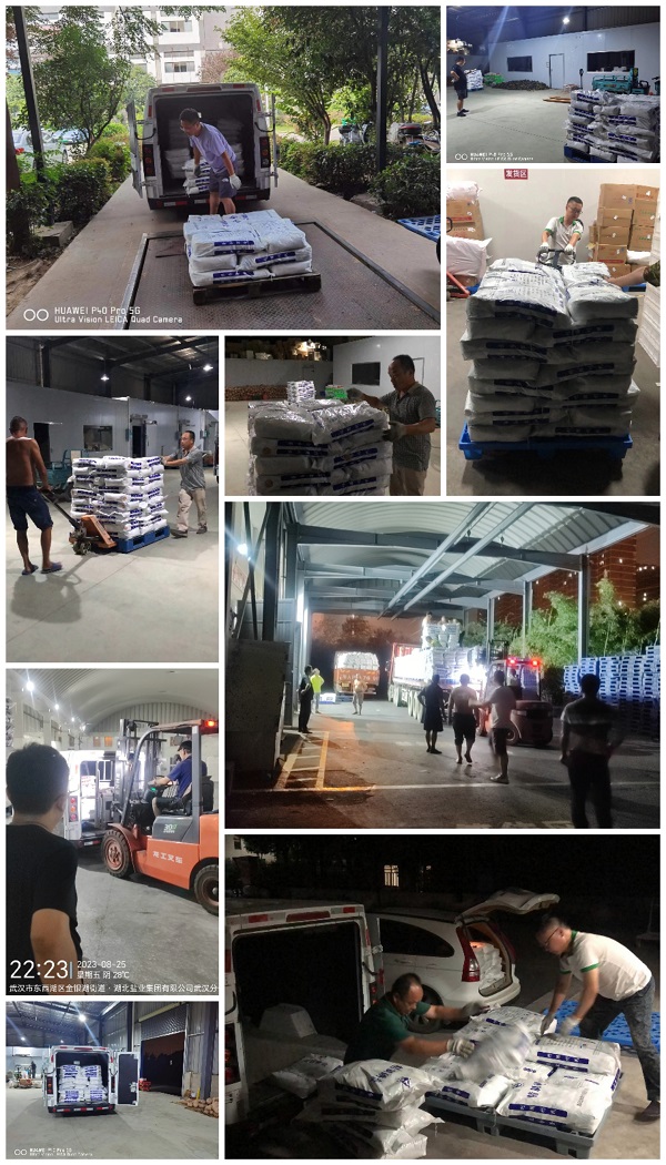 漢陽(yáng)分公司和郊縣公司工作人員穿梭在大街小巷、農(nóng)貿(mào)市場(chǎng),夜以繼日為轄區(qū)客戶配送食鹽。
