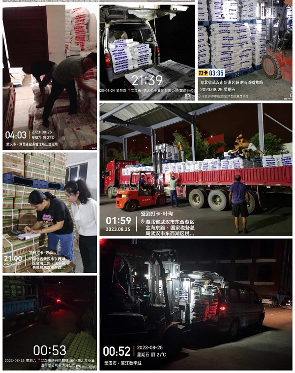 從24日開始至今,武漢鹽業(yè)全員上陣,放棄周末休息,日夜兼程,已連續(xù)奮戰(zhàn)三天三夜。夜晚倉(cāng)庫(kù)內(nèi)外都是燈火通明,兩級(jí)公司班子成員坐鎮(zhèn)一線、靠前指揮,現(xiàn)場(chǎng)安排部署;公司全體黨員干部沖鋒在先,做到守土有責(zé)、守土盡責(zé);職能部門工作人員聞令而動(dòng)、迅速奔赴,成為園區(qū)守門員、分揀打包員、倉(cāng)庫(kù)發(fā)貨員、秩序維護(hù)員、貨物清點(diǎn)員、后勤保障員。大家分工協(xié)作、同心堅(jiān)守、連續(xù)奮戰(zhàn)、激情飽滿,為食鹽保供貢獻(xiàn)自己的力量。