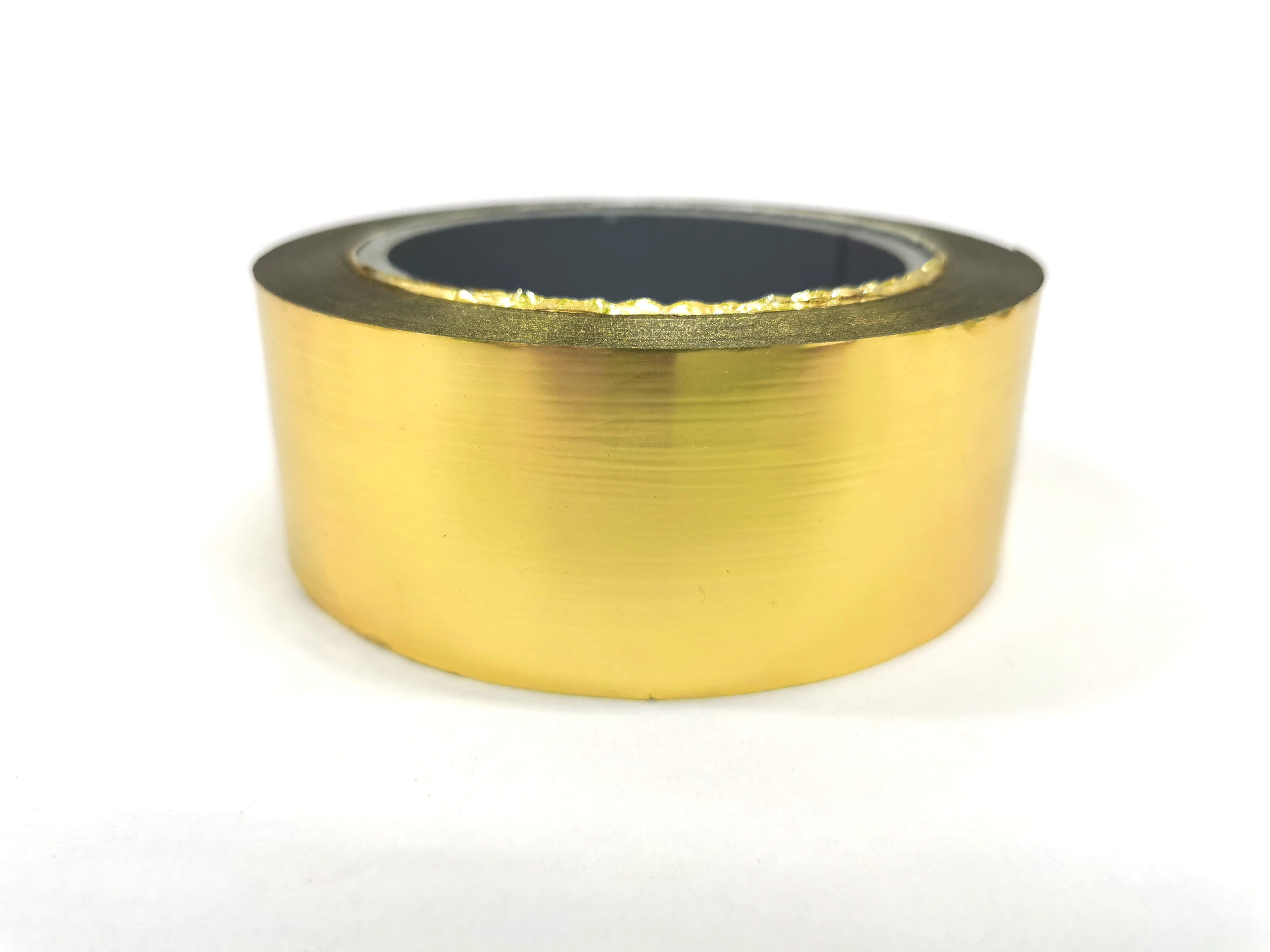 普通燙金膜是一種在薄膜片基上經(jīng)涂料和真空蒸鍍復(fù)加一層金屬箔而制成的燙印材料。